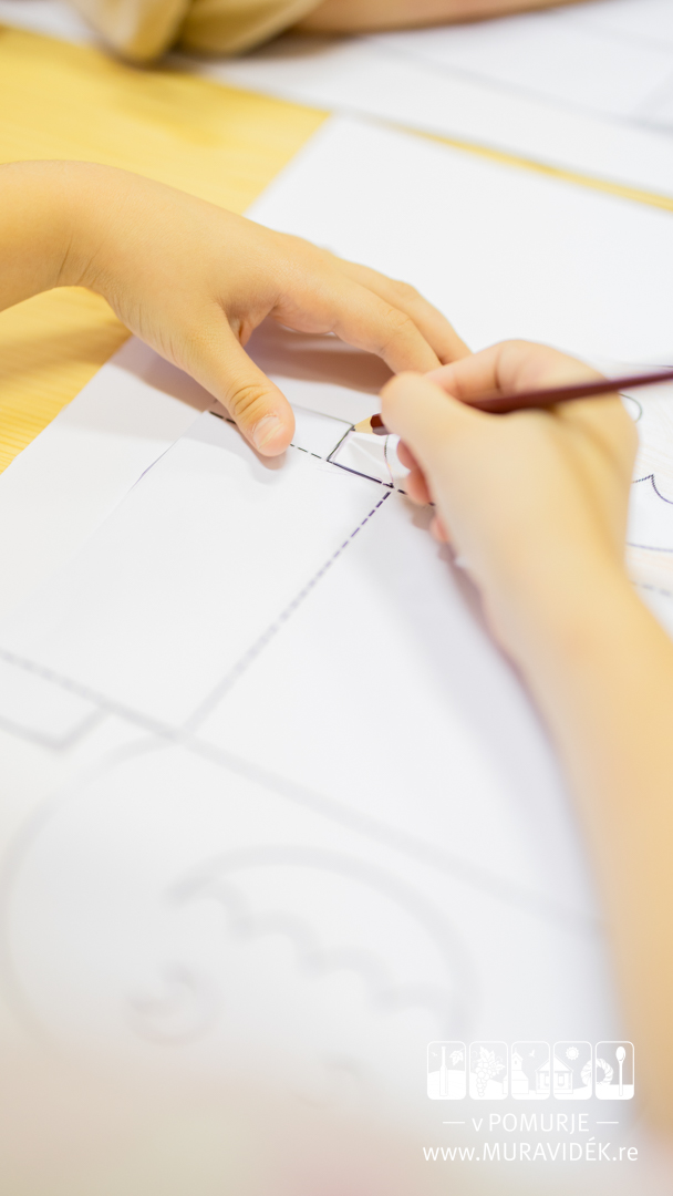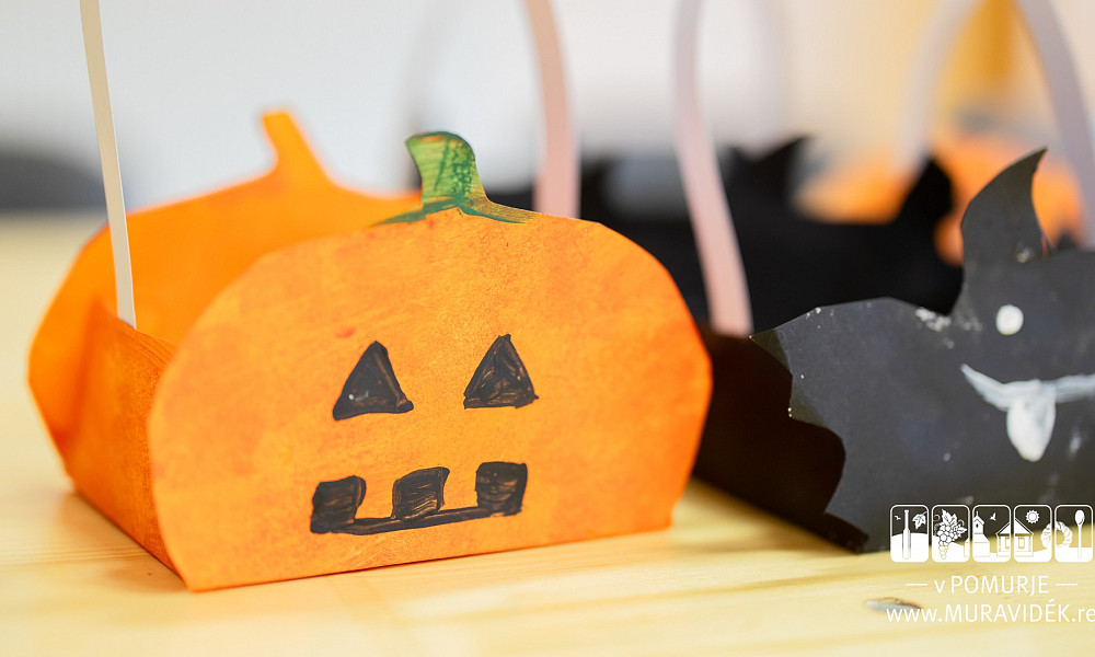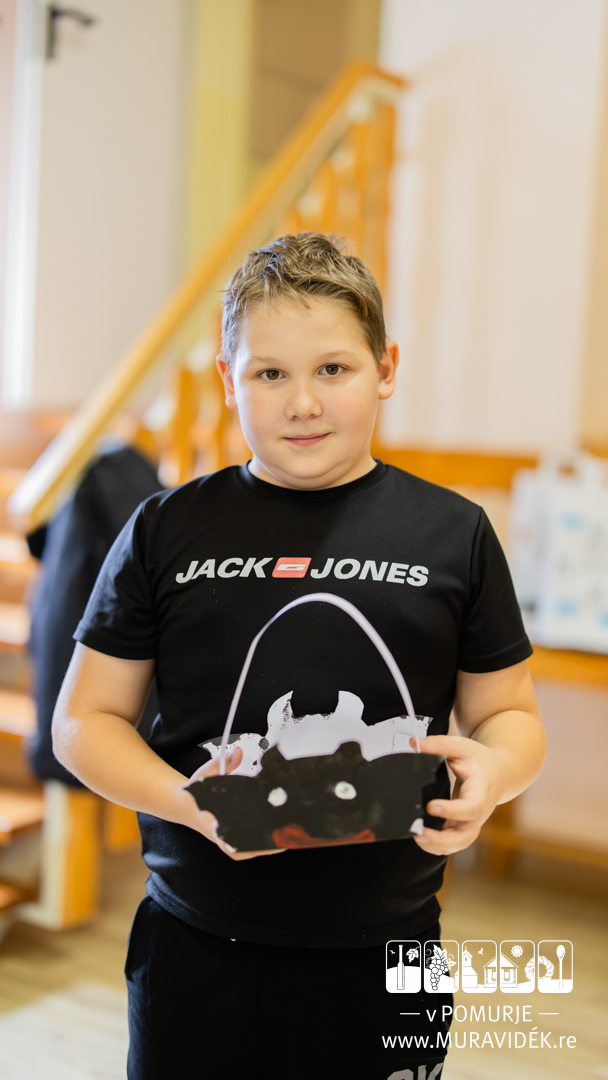 Skupaj smo izdelovali jesenske košare – najprej smo jih izrezali, nato skrbno pobarvali ter na koncu še zalepili. Nekateri otroci so v svoje košare dodali tudi malo »strašljive« ustvarjalnosti, kar je delavnici dalo dodatno igrivost.