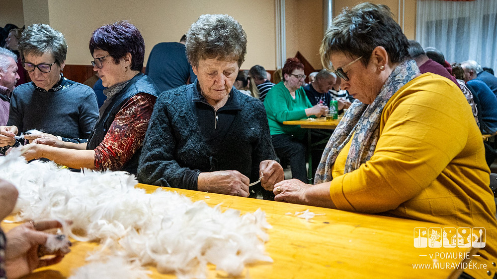 Früher gab es auf Bauernhöfen viele Arbeiten, die durch die Zusammenarbeit der ganzen Gemeinschaft und mit gegenseitiger Hilfe mehrerer Menschen erledigt werden konnten. Auf der einen Seite ging die Arbeit gemeinsam schneller voran, auf der anderen Seite konnte man an kalten Winterabenden ein wenig an der Heizung sparen, indem man sich abwechselnd in einem und dann in einem anderen Haus traf. Das Kämmen von Federn und das Schälen der Kürbiskerne erfolgten in der Regel gleichzeitig. Während die Frauen die Federkiele von den Federn entfernten, schälten die Männer die Kürbiskerne. Die abgestreiften Federn landeten in Bettdecken und Kissen, während aus den geschälten Kürbiskernen köstliches Kürbiskernöl hergestellt wurde. Die Leute trafen sich in der Regel abends für diese Arbeiten, manchmal blieben sie sogar bis Mitternacht. In solchen Momenten wurde die Arbeit von großartigen Gesprächen und guter Laune begleitet.