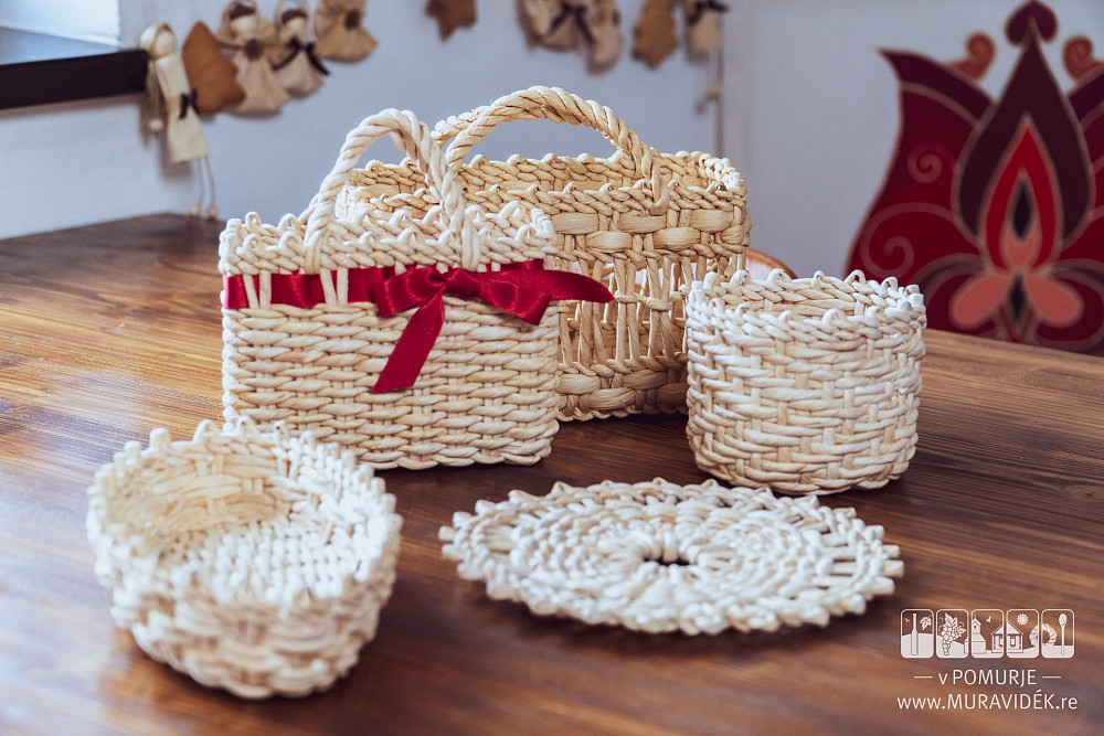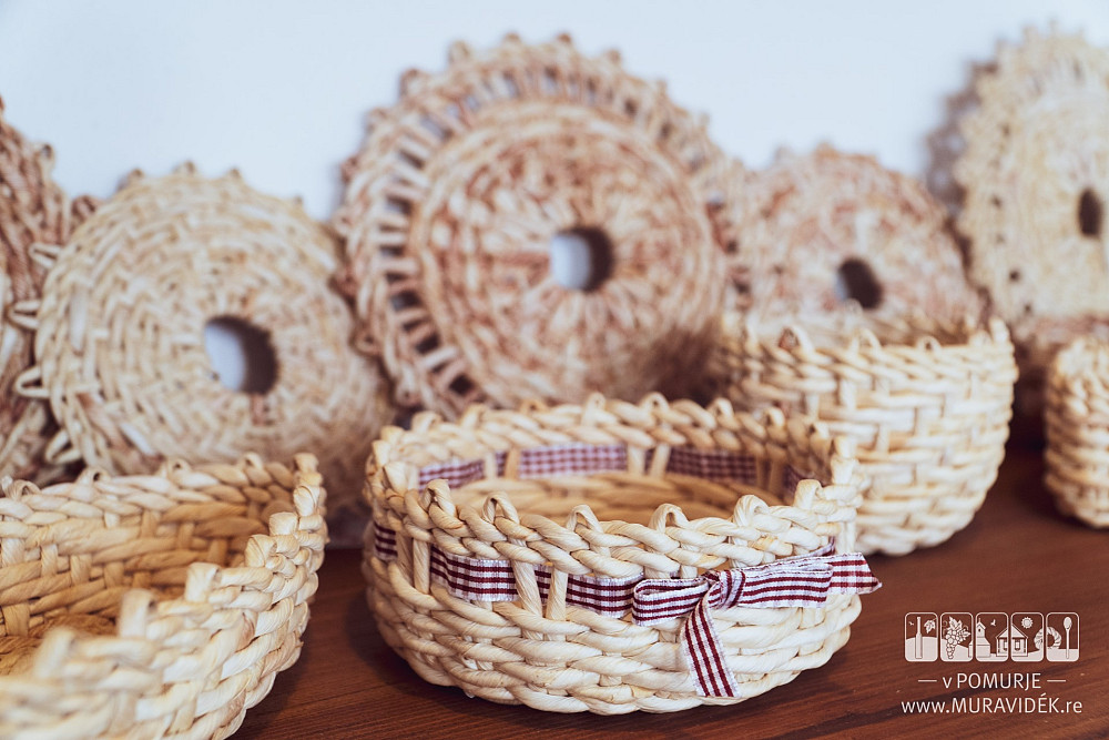 Die Vorteile und die Verwendbarkeit des Maisstrohes sind in Prekmurje schon seit eh und je bekannt, denn es handelt sich um ein sehr beständiges Material, das auch für das Flechten verschiedener Artikel, wie zum Beispiel Körbe, Fußmatten, Untersätze, Maisstrohfiguren und andere brauchbare Gegenstände verwendet wurde. Im alltäglichen Leben der Menschen spielte der Korb eine entscheidende Rolle. Im Korb brachte man nämlich das Essen zum Acker und die Mädchen benutzten den Korb sogar als Schultasche. Seine Anfertigung jedoch erfordert viel Geduld und Genauigkeit.