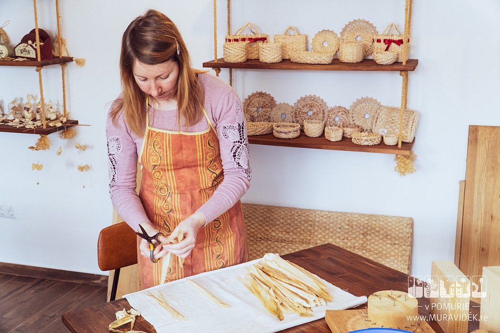 Die Rückkehr zu natürlichen Materialien und der Wunsch, etwas basteln zu können, brachten die Wiederbelebung der Kunst der Anfertigung verschiedener Gegenstände aus Maisstroh, die mittlerweile wieder beliebt wurden. Genau deswegen sind das Aufrechterhalten und das Weitergeben der Tradition äußerst wichtig. Dem stimmt auch Silvija Gerenčer aus Dobrovnik zu, die sich die Fertigkeiten und die Feinheiten des Korbflechtens von erfahrenen Handwerkern aus Prekmurje angeeignet hat.